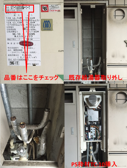 | 備考 | 「給湯器が壊れてお湯が出ません」とのオーナー様からのSOSで本日GQ-1612WE-KB給湯専用2台の交換となりました。この給湯器は専用PS設置となりますので受注生産品となります。又、年内一杯で生産終了となりますので年内中に交換を考えてるオーナー様もいらっしゃるようです。 | |