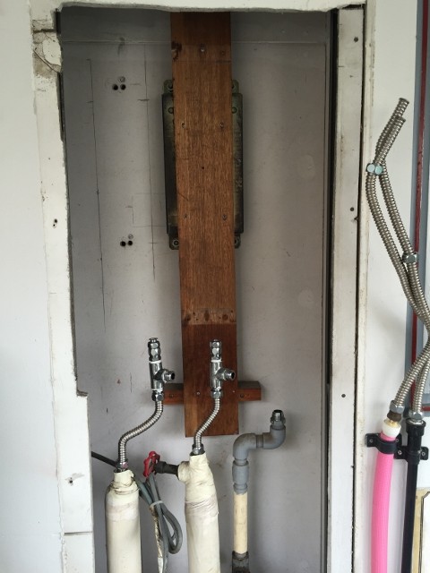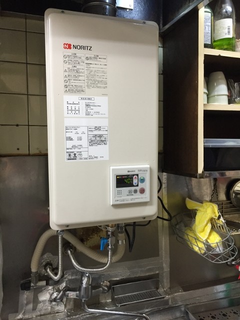 | 備考 | 「既存給湯器を交換して下さい」とのお電話で本日室内に無理矢理、壁掛け式給湯器設置状態からノーリツFF式20号給湯専用GQ-2037WS-FFAへの交換となりました。既存換気扇を撤去し、隣接ビルとの距離があまりなかったのでFF-16トップ300型(下方排気)を採用し1/2給湯給水管及1/2金属可とう管600mm、給水バルブ新設、漏ガス検査後無事完了です。かなりの狭所作業となりました。 | |