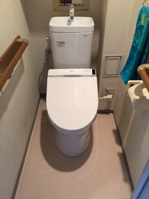 | 備考 | 「既存トイレウォシュレット部分からの漏水でトイレ交換も含めて交換して下さい。」とのお電話で本日の施工となりました。既存TOTOC730P壁排水148mmでしたのでクッションフロアー貼替後ピュアレストMR壁排水150mm、ウォシュレットS1 TCF6521#NW1を取付無事完了です。 | |