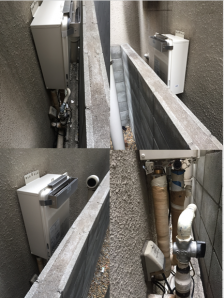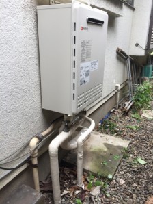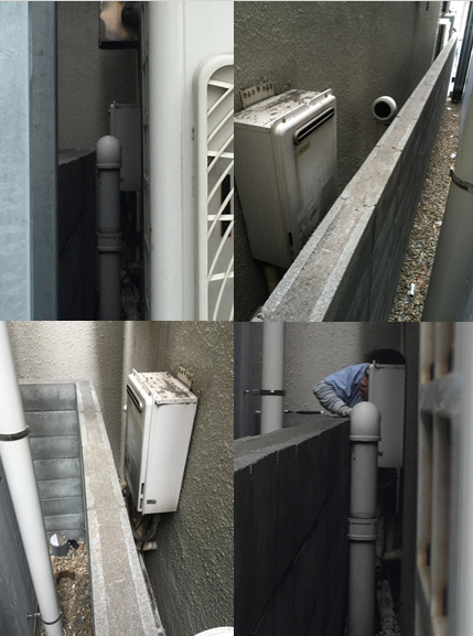 | 備考 | 「既存給湯器の調子が悪いので交換して下さい」とのお電話で本日の施工となりました。かなりの狭所作業となりましたが3/4金属可とう管600mmを新規交換、また既存給湯器が隣接ビルの排水管との距離が600mm未満だった為、上方排気カバーを設置し無事完了です。 | |