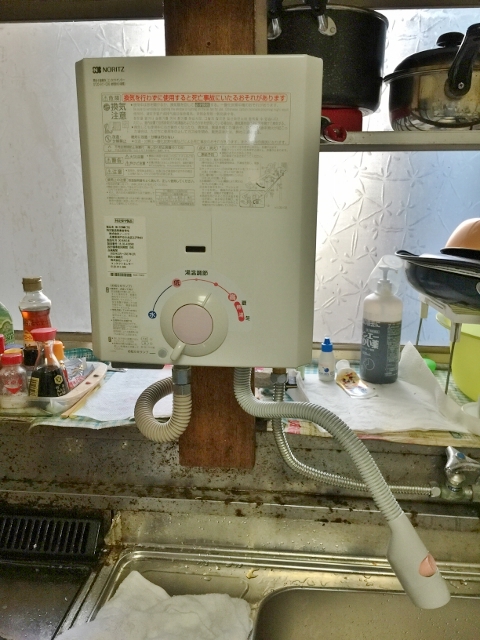 | 備考 | 「瞬間湯沸かし器故障の為交換して下さい。」とのお電話で本日既存パロマPH-5BVからノーリツGQ-520MWへの交換となりました。既存の湯沸器は塩ビ管直結でしたので1/2フレキ管を新規で切廻し無事終了です。 | |