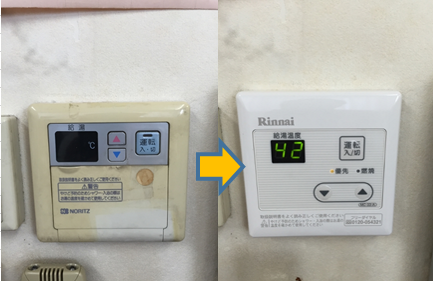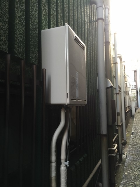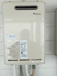 | 備考 | マンションオーナー様の依頼で本日東京ガス16号給湯専用KG-E516RFWから16号給湯専用オートストップRUX-A1610W-Eへ8部屋分の交換となりました。1/2都市ガス強化ホース約300mmを新規交換し無事完了です。 | |
