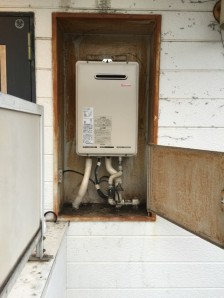 | 備考 | 管理会社様の依頼で本日ノーリツエコア1000からリンナイ16号給湯専用オートストップRUX-A1610W-Eへの交換となりました。既存給湯器を支えていた鉄の背面部分をサンダーで切断(追加工事)、銅管1/2を切断しフレキ管に変換、1/2金属可とう管250mmを接続して無事完了です。 | |