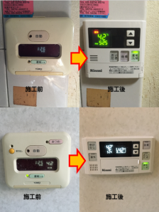 | 備考 | 「熱源機の調子が悪い」とのSOSで本日既存松下AT-366RSA-AW2Q-GからリンナイRUFH-V2403AW2-3(B)フルオート24号(床暖房2系統1回線、浴室乾燥機1系統)への交換となりました。床暖リモコンのスイッチの調子も悪いとの事で 既存リモコンよりFC-09DRに、3/4金属可とう管400mmも新規交換し無事完了です。 | |