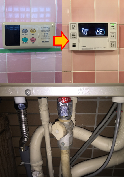 | 備考 | 「現在使用中の追い炊き給湯器の調子があまりよくありません」とのお電話で既存GT-2428SAWXよりGT-2450SAWX-2 BL(24号オート)へ本日の交換となりました。3/4ガス強化ホース、3/4給湯給水管を交換し無事終了となりました。 | |