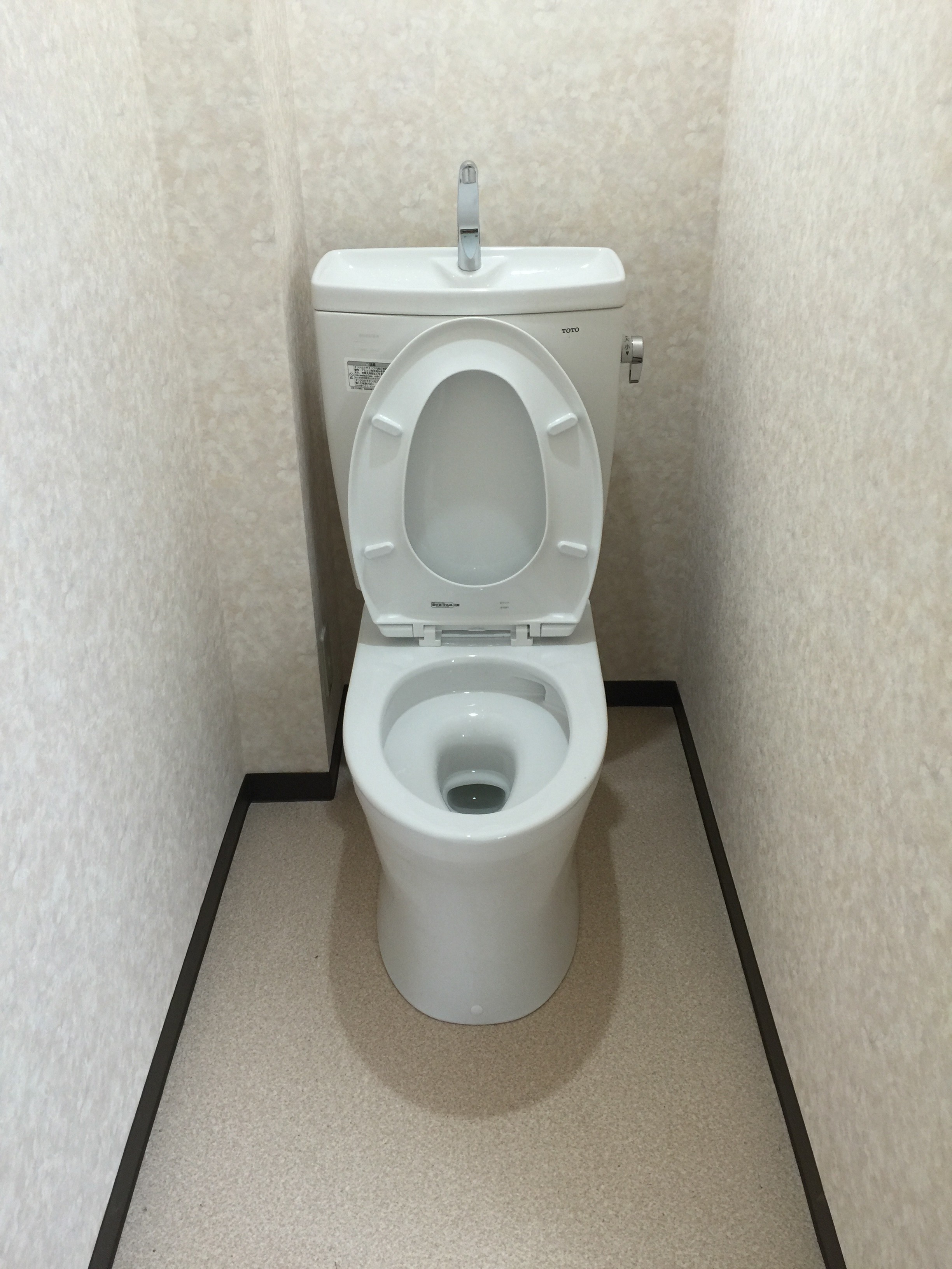 | 備考 | 本日既存便器からCS220BM+SH221BAS(基本工事95,000円(税込))への交換となりました。既存便器解体、及床剥離・根太補修後新規床貼・クロス貼(一部補修)・クッションフロアー貼ソフト巾木を貼替、既存タンクが墨付けだったのでTOTO取替用止水栓TS220FURを取付て全て自社施工により無事完成です。 | |