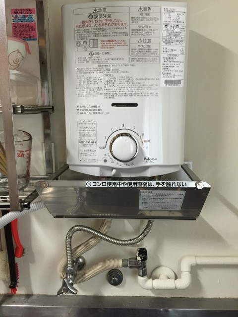 | 備考 | 「瞬間湯沸かし器を取り付けてください。」とのお電話で本日パロマPH-5BVの取付となりました。ガスコンロの上部取付でしたので防熱版を設置し1/2金属可とう管及1/2給水フレキ管を新規設置して無事完了です。 | |