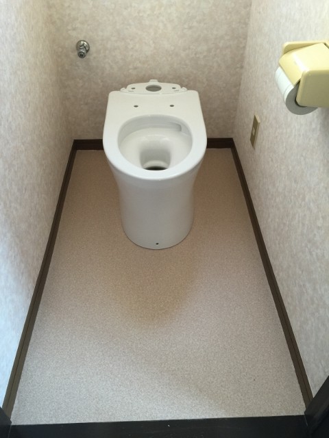 | 備考 | 「便器の下から漏水している」とのSOSで当初は漏水部分の補修との事でしたが既存便器のフランジが錆び床が腐っていたので、本日既存便器からCS220BM+SH221BAS(基本工事95,000円(税込))への交換となりました。既存便器解体、及床剥離・根太補修後新規床貼・クロス貼(一部補修)・クッションフロアー貼ソフト巾木を貼替、既存タンクが墨付けだったのでTOTO取替用止水栓TS220FURを取付て全て自社施工により無事完成です。 | |