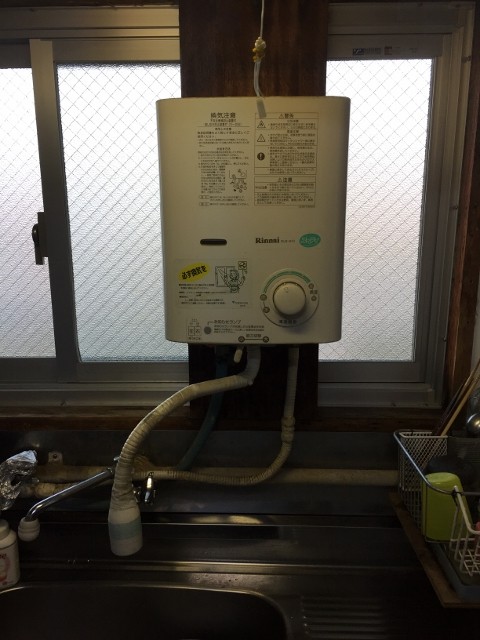 | 備考 | 賃貸住宅オーナー様の依頼で本日90年製リンナイ瞬間湯沸かし器RUS-5HX(b)から同じリンナイRUS-V51YT(WH)に交換いたしました。1/2ガス強化ホース及1/2給水フレキ管を交換し無事完了です。 | |