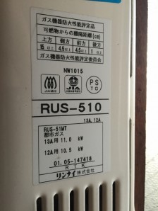 | ガス給湯器種類 | リンナイ RUS-510 |