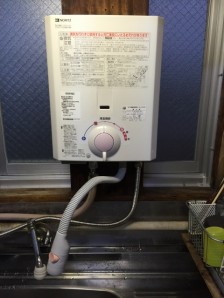 | 備考 | マンションオーナー様の依頼で、GQ-2010WE給湯専用20号からGQ-1639WS(弊社在庫品)給湯専用16号に交換となりました。1/2給湯給水管及1/2ガス強化ホースを新規交換し無事完了です。又、別発注でTOTO混合水栓シングルレバーTKGG30SEの同時交換工事(20,000円(税込)残処分含む)も行わせていただきました。 | |