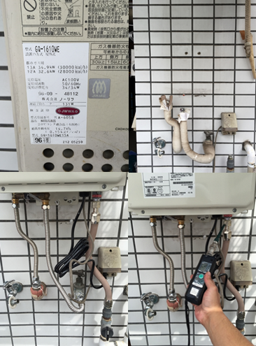 | 備考 | 97年製GQ-2010WE給湯専用20号からGQ-1639WS給湯専用16号(弊社在庫品)に本日交換となりました。1/2給湯給水管及1/2ガス強化ホースも新規交換し無事完了です。 | |