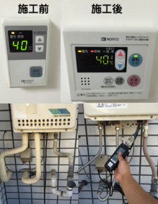 | 備考 | 本日朝、お客様からのSOSで東京ガスRC-2003S追い焚き20号据置型からお客様の要望でノーリツGQ-2039WS(弊社在庫品)給湯専用に交換いたしました。3/4給湯給水管及1/2強化ホース(600㎜以上)を新規接続して無事完了です。 | |