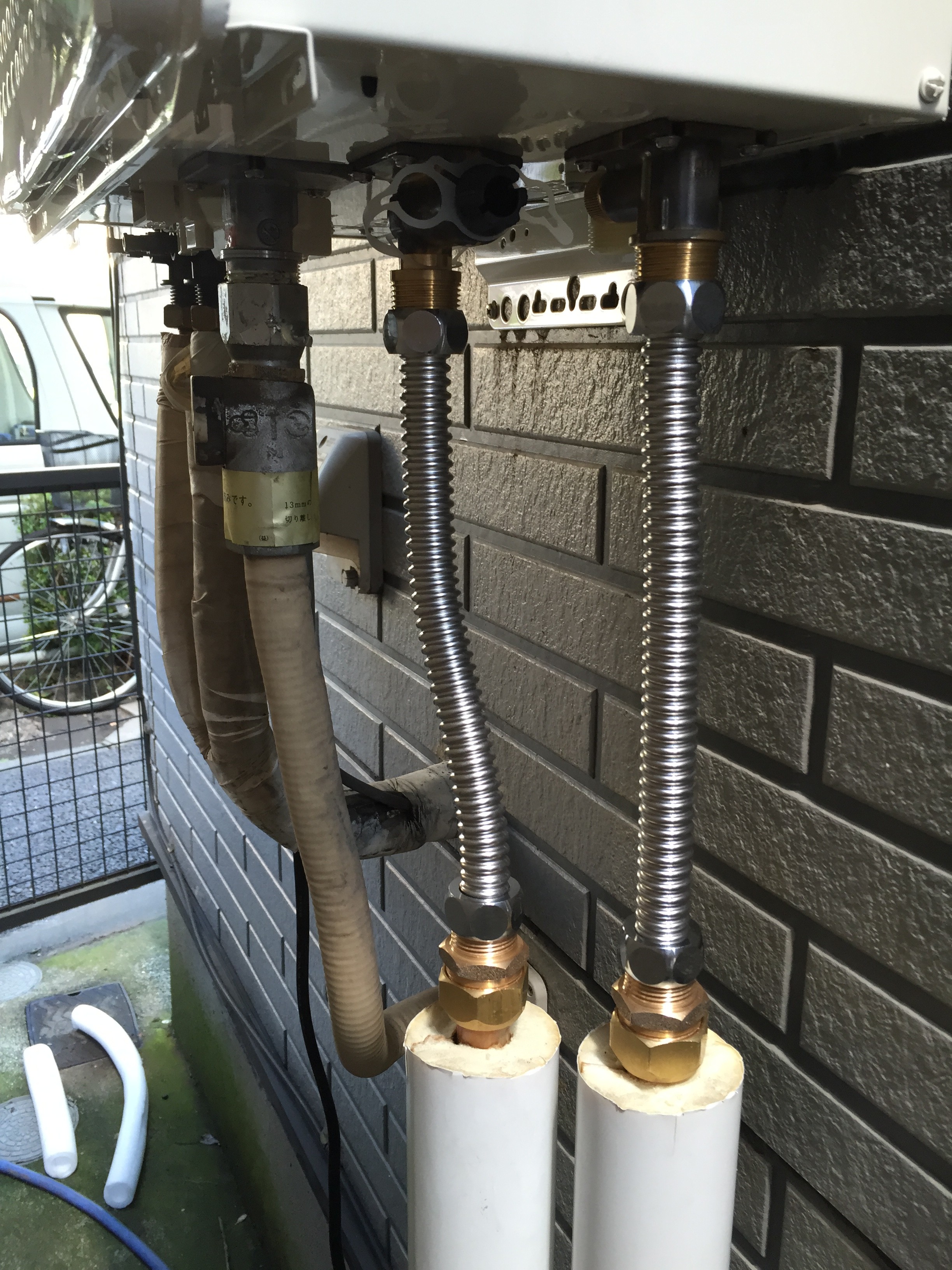 | 備考 | 「お湯が止まって困っています。」とのSOSで大至急施工中写真②の9月11日仮設給湯器設置。本日9月13日リンナイRUF-2008SAWオートからノーリツGT-2050SAWX-2 BLに交換しました。 | |
