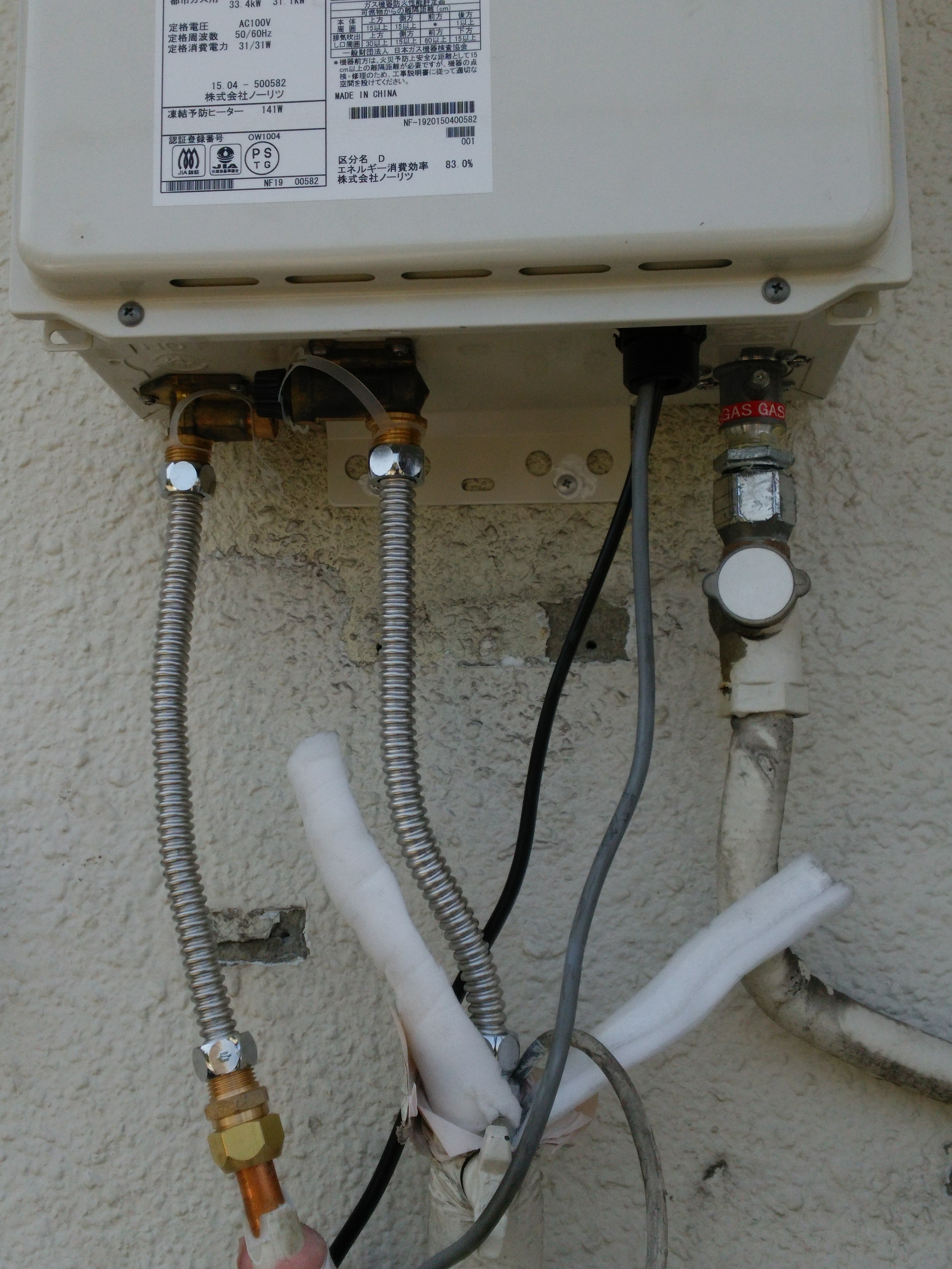 | 備考 | 東京ガス(ノーリツ製2000年)16号オートGT-1616SAWX(15年使用)から16号オートGT-1650SAWX-2 BLに調子が悪いとの事で本日交換となりました。OEMとはいえ完全な後継機種でしたので作業時間も約1時間で終了しました。 | |