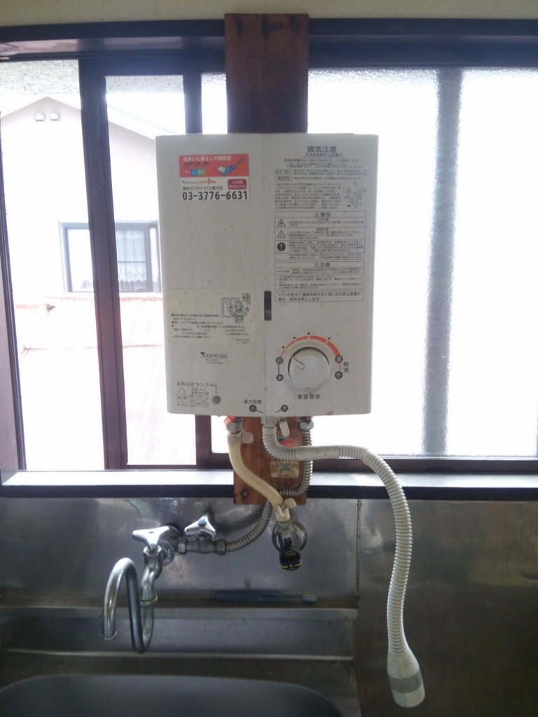 | 備考 | 賃貸アパート経営のS様より内装工事のご依頼があり、キッチン及瞬間湯沸かし器の交換他の施工を行わせて頂きました。ここでは瞬間湯沸かし器のみの施工事例を掲載いたしました。 大湯館ではトイレ、キッチン、水栓金具の交換及内装工事のご依頼にも全て自社施工でおこたえしています。 | |