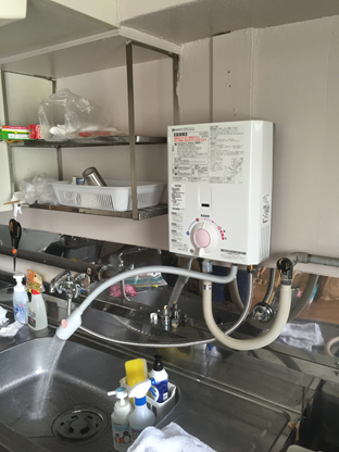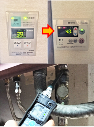 | 備考 | 東京都目黒区T様の依頼で本日、ノーリツ 瞬間湯沸器元止式 GQ-530MWの取付工事を行いました。長尺フレキ管600mm、給水用フレキ管500mm毎/2000円×2、都市ガス強化ホース600mm毎/3000円取付・試運転・取説・漏ガスチェック後無事完了です。大田区の 給湯器交換工事は大湯館にお任せください。 | |
