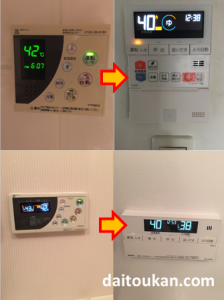| 備考 | 東京都大田区S様のご依頼で本日、ハーマンYGM2463RSA6Hからノーリツ 24号熱源機エコジョー壁掛け式オート2温度3 GTH-C2450SAW3H BLへの交換となりました。床暖房が1個のリモコンで3回路と浴室暖房1回路でしたが、リモコン交換・試運転・漏ガスチェック後無事完了です。 | |