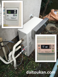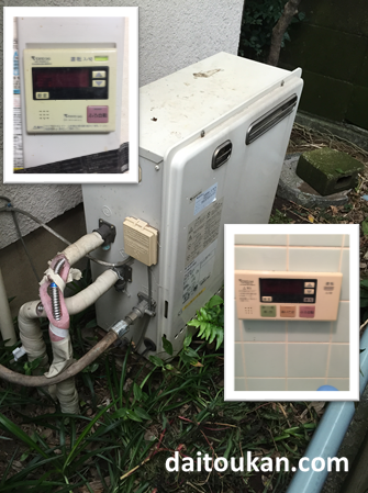 | 備考 | 東京都大田区A様のご依頼で本日、ノーリツ 16号隣接型風呂給湯オート GRQ-1637SAWからお客様のご要望でリンナイ 16号据置型給湯専用 RUX-A1613Gへの交換となりました。風呂追炊き・循環穴及び外壁側2穴をリンナイ 閉塞蓋 UF-SC×4個で閉塞、リモコン設置・試運転・お風呂に水を張り漏水試験・漏ガスチェック後無事完了です。 | |