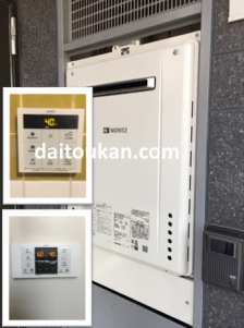 | 備考 | 管理会社様の依頼で本日東京都板橋区のマンションベランダ設置ガスター OUR-160からノーリツ 壁掛け式16号給湯専用 GQ-1639WSへの交換となりました。配管カバー・試運転・漏ガスチェック後無事完了です。 | |