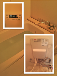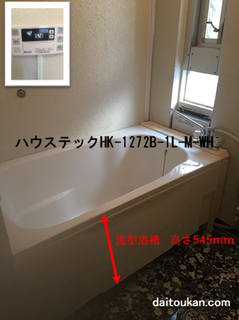 | 備考 | ガス風呂釜タイプからリンナイホールインワン給湯器給湯専用RUX-HV161-Eへの交換となりました。既存在来お風呂の幅が1295mmでしたのでハウステック浴室関連部材 CS-20(幅90mm)+ハウステック浅型浴槽HK-1272B1-1L-M-WH(1200mm幅)を組み合わせ、漏ガスチェック後無事完了です。 | |